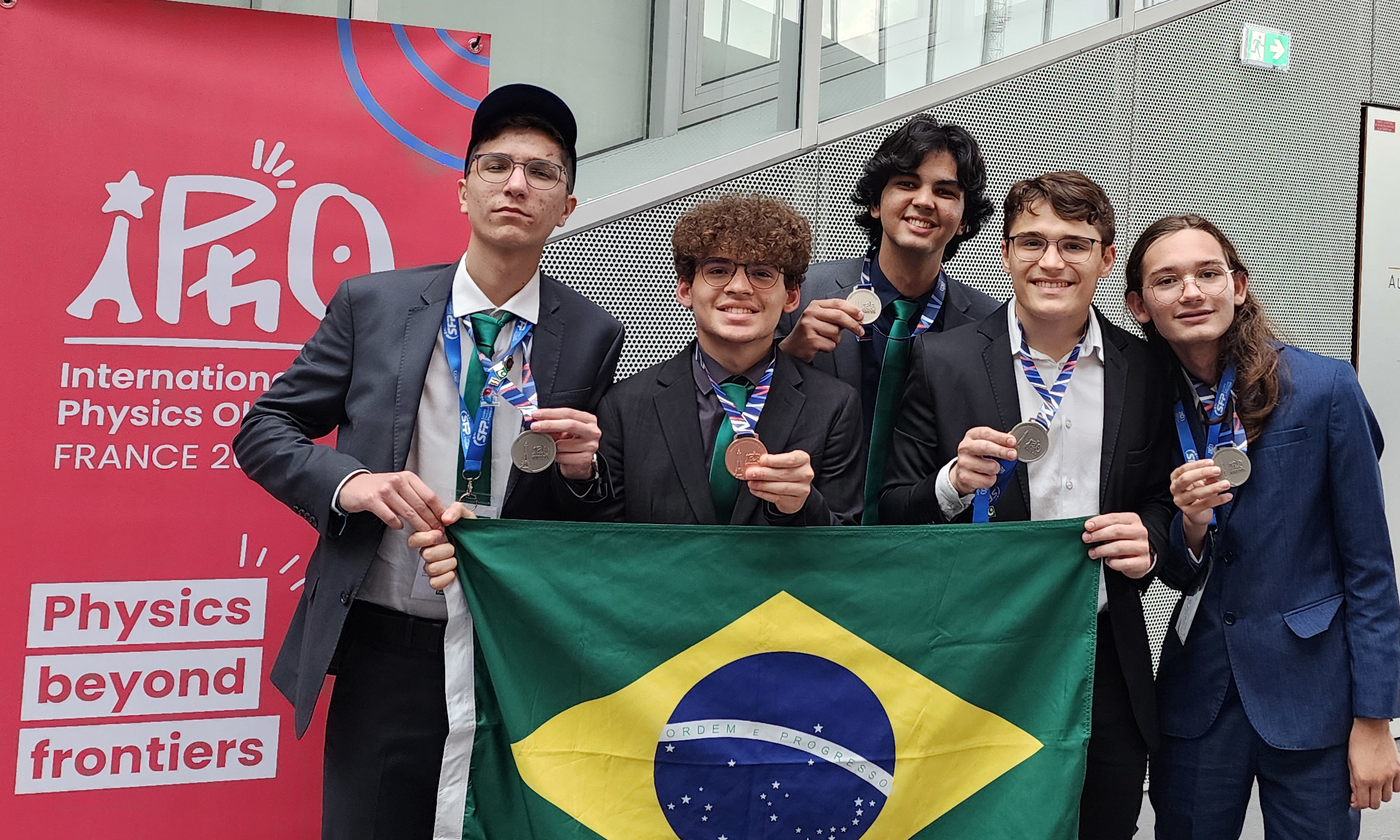 A equipe brasileira que representou o país na 55th International Physics Olympiad (IPhO 2025), realizada na França, conquistou quatro medalhas de prata e uma medalha de bronze, configurando um dos melhores desempenhos do Brasil desde o início de sua participação na competição, no ano 2000.